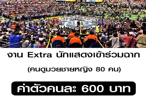 งาน Extra นักแสดงเข้าร่วมฉาก คนดูมวย (ค่าตัวคนละ 600 บาท) Read More »